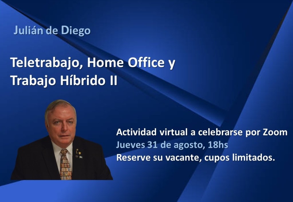Jueves 31 de agosto 18hs | Teletrabajo, Home Office y Trabajo Híbrido II, virtual por Zoom